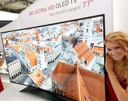77英寸UHD OLED TV:此款产品可以让用户获得类似IMAX的观影体验,除了柔性曲面屏幕、77英寸大屏外,此款电视机还采用了WRGB四色技术,可以带来更优秀的画质。此款产品目前仅是一款概念设计产品,没有具体型号,目前称为“77-inch ULTRA HD CURVED OLED TV”,是否、何时推出成品尚无确切计划。此外,LG展出包括:84英寸4K技术的Ultra超高清3D电视(84LA9800)、Cinema3D智能电视等等。